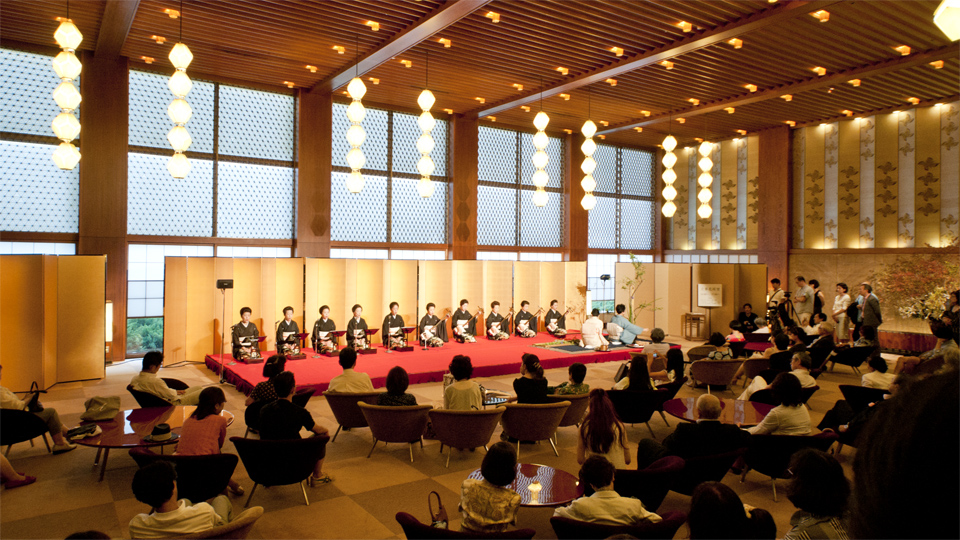 和楽とともに最後のオークラ惜しみながらも即興で行われる生け花を楽しんでいます。