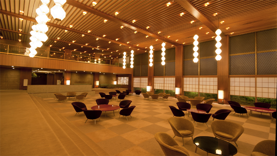 居心地のよい柔らかな光を演出する照明は「オークラランタン」と呼ばれている。 イスは上からのぞくと 梅の花を模しているかのように見える。 空が明るくなるこんな早朝に。スタッフが入念にレイアウトを整えていた。