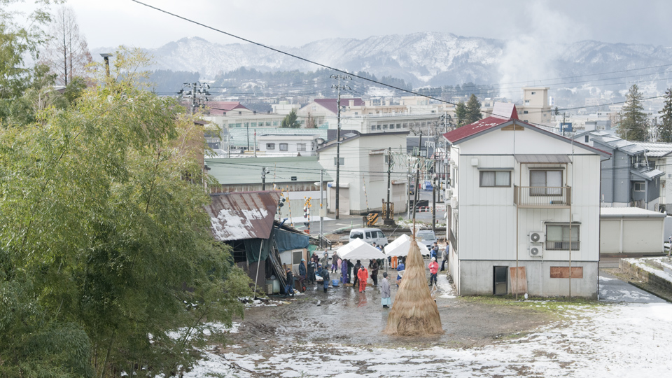 藁を高くくみ上げて行う 「さいの神」という神事があり、縁起物ということで、行ってみた。