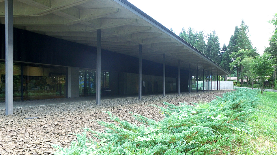 裏の山へ向かって 緩やかな傾斜が 2層という建物を隠す。