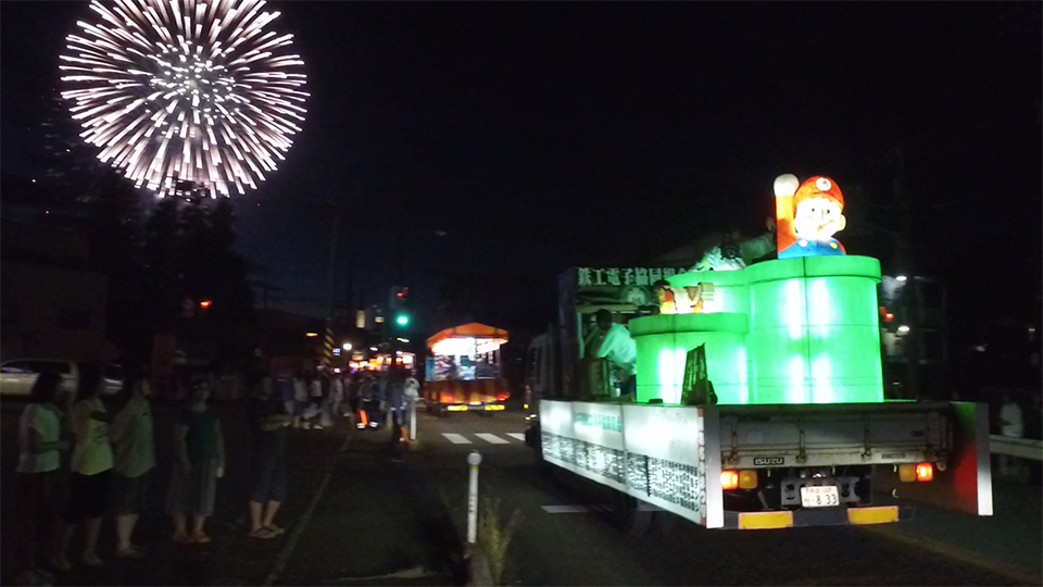 花火も揚がり、閉会式を想像させる奇跡のコラボがこんな田舎で完成。