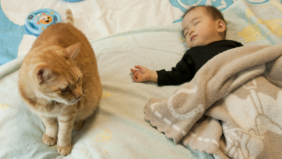 そこで猫が真横に。