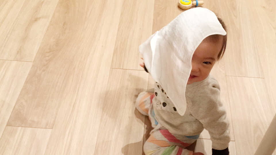 ガーゼかぶり。 なにが面白いのかわからないけど、ずっとやってご機嫌。