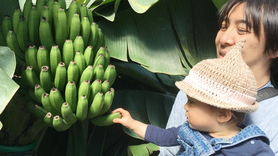 木花の大好物。バナナを見に来ましたが、触れちゃいました。
