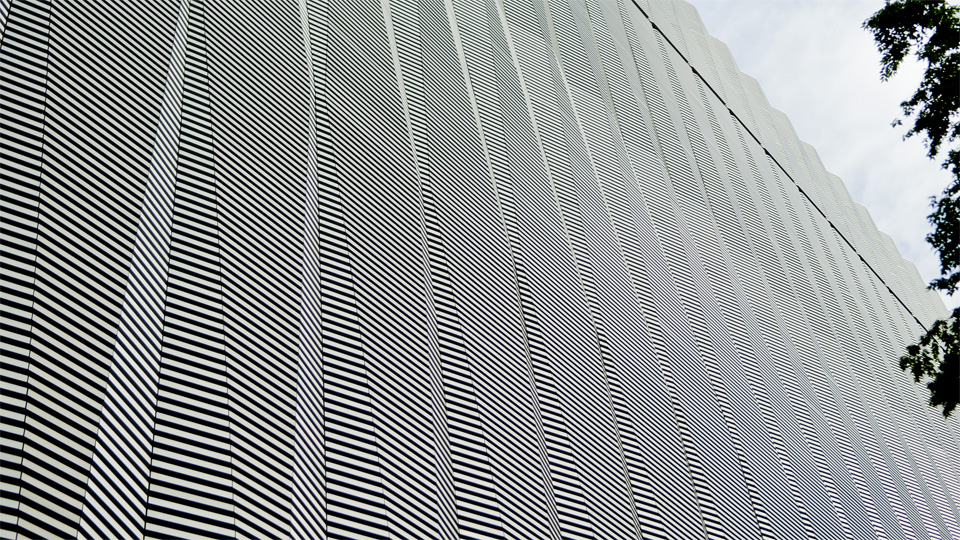 裏側も折りで表現された目隠しルーバーが強いコンセプトを感じました。