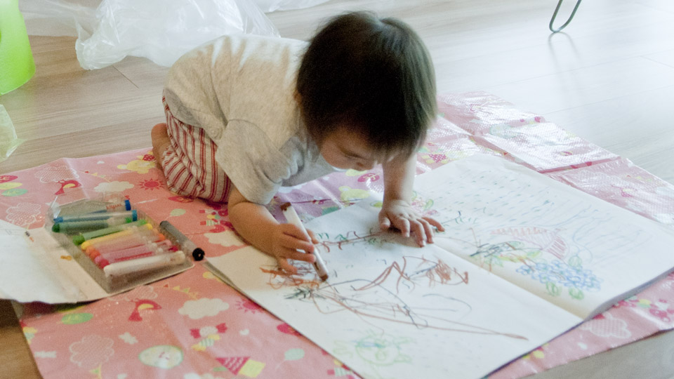 落書き帳にクレヨンでお絵かきができるようになってきました。