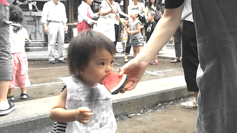 昨日の夕飯ではスイカ食べなかったのに。雰囲気に流されてパクリ。
