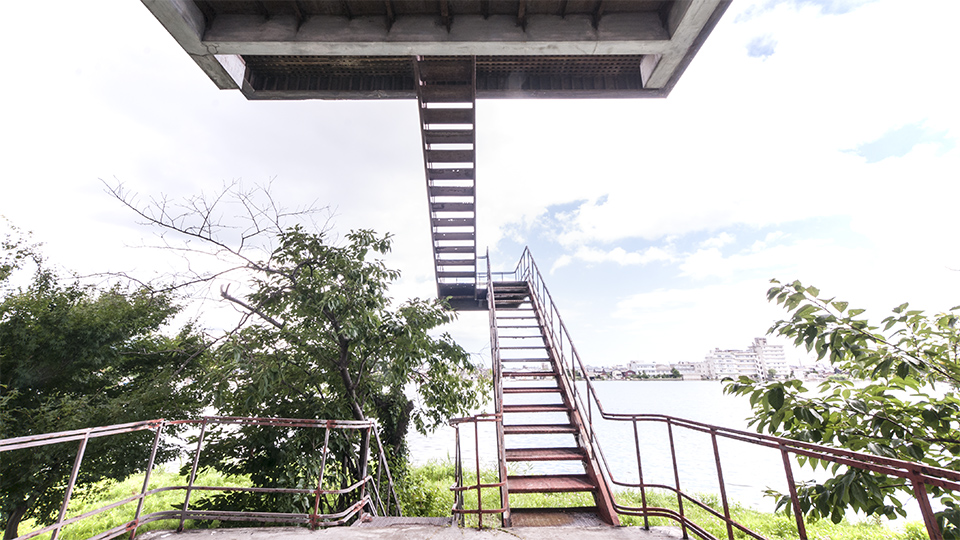 踊り場に柱なし。 恐る恐る上がってみたが ゆらゆらふらふら。