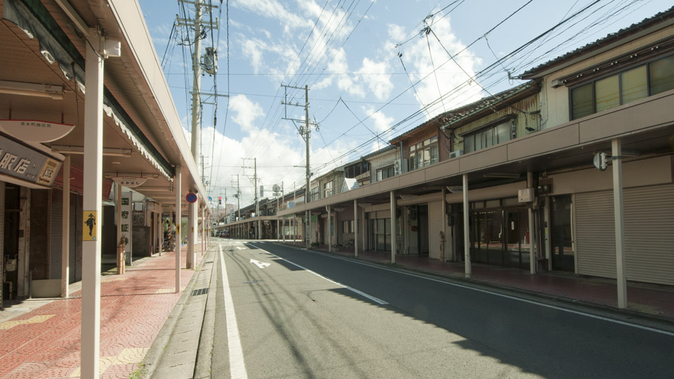 両津港周辺の商店街。