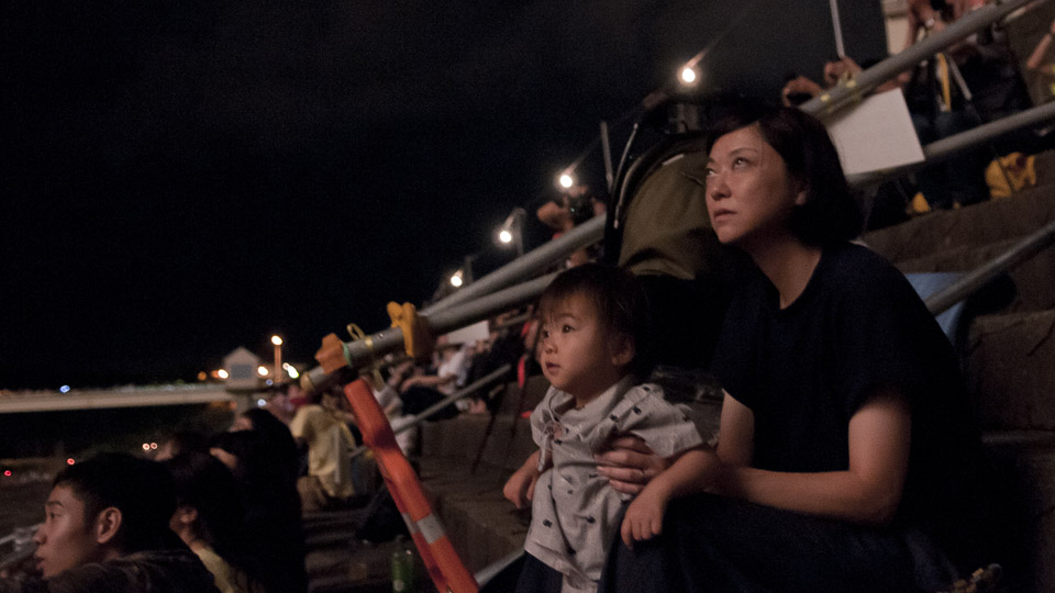 甚平をきて花火大会の会場へ。頂いた桟敷席は信濃川の特等席で見学。