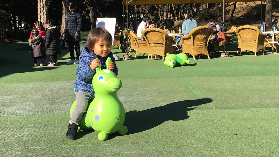 にこにこパークでロディにご満悦。 ぼよんぼよーん。