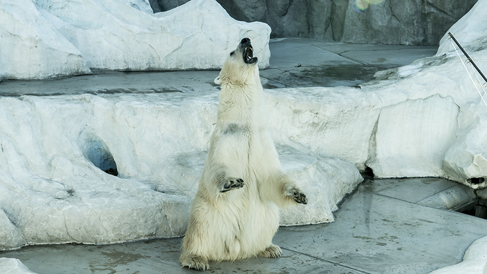 白熊の餌付けに立ち会えた。