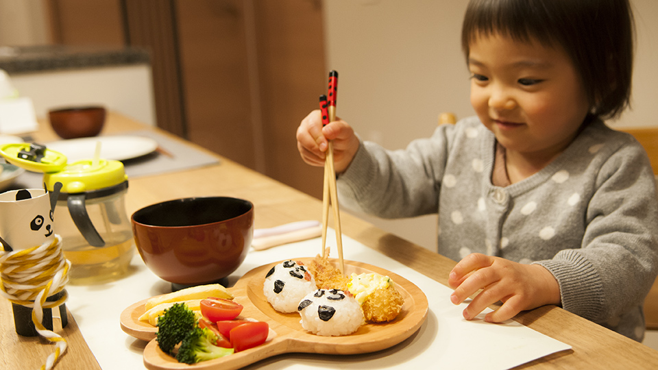 帰宅し、誕生日の夕飯は パンダおにぎりがお出迎え。