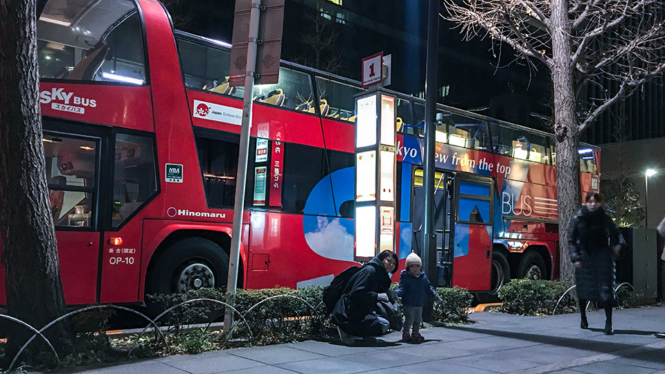 この寒空の中、一度乗ってみようと言っていたスカイバス(丸の内)へ。