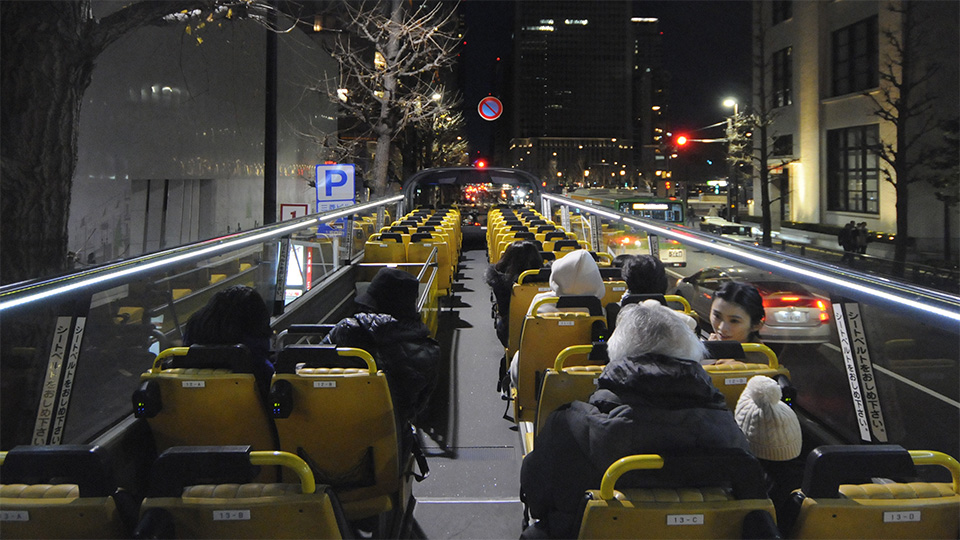 走り出す前から極寒のオープンバスです。丸の内から出発!