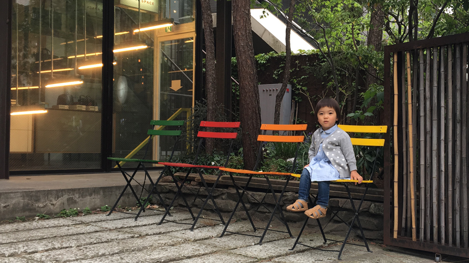 もちろんベンチがあったら休憩。 滑り台も見つけて滑って帰る。