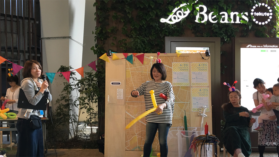 木花と二人で商店街をぶらぶらしながら駅まで来たら 主婦の有志が運営するバルーンアートをやっていた。 プロじゃないからいろいろ注文されても、得なものに替えたりとおばちゃんたちは 楽しくやってくれた。 1時ほど楽しませてもらって。2つもらってバスに乗って帰宅。