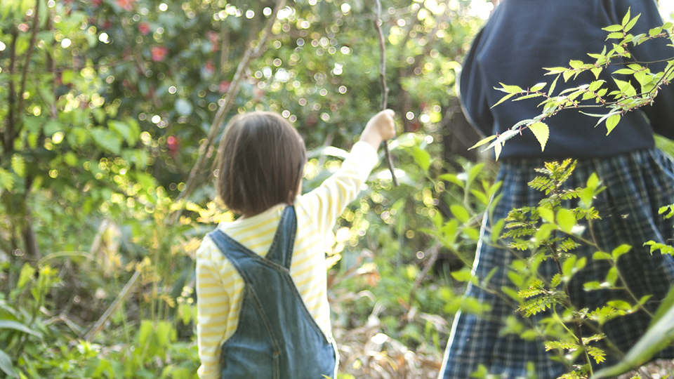 その棒を掲げ、おばあちゃんと森の奥へ探検に向かう。