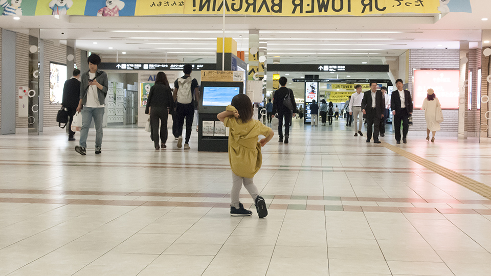 ホテルに帰る前の 札幌駅通路でポーズ。