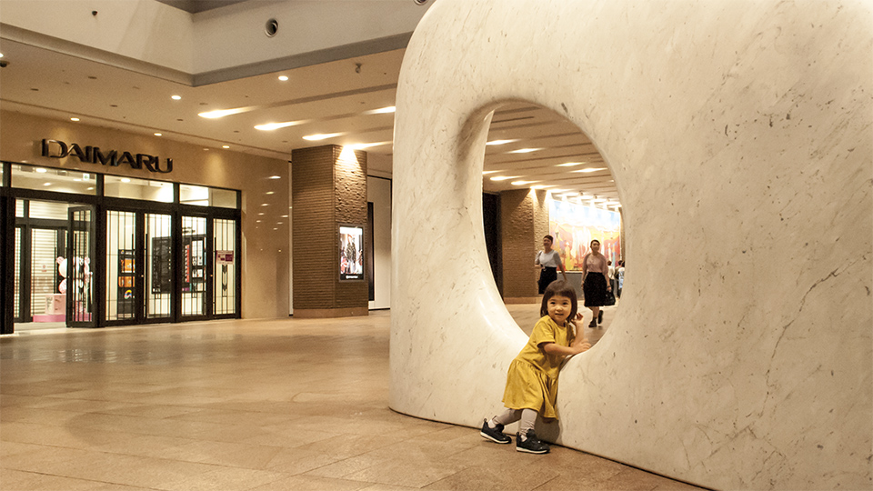 札幌駅の安田侃の彫刻の前でもポーズ。