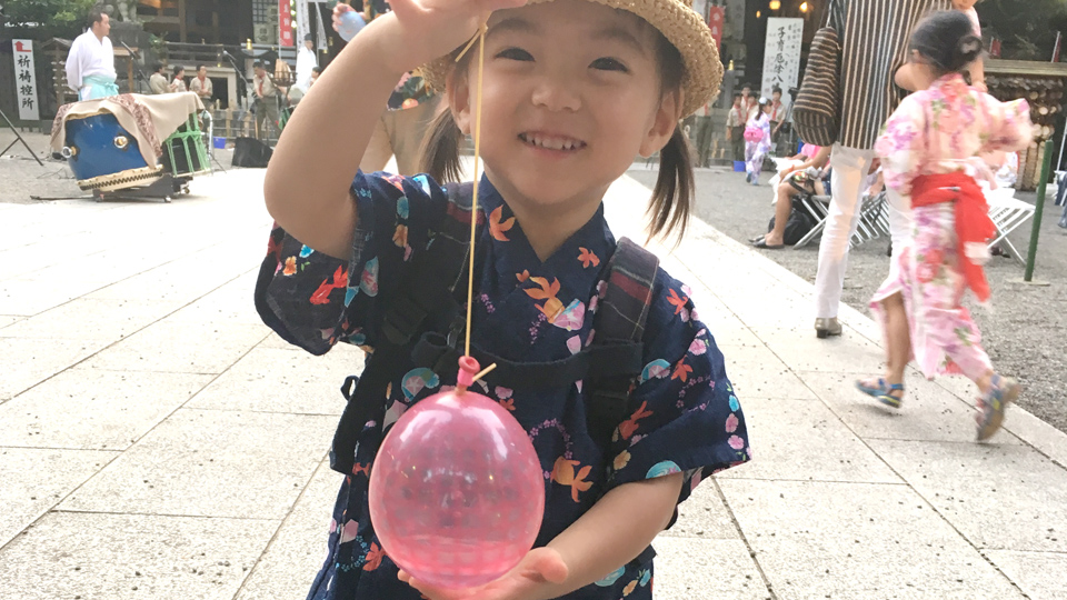 甚平きてヨーヨーをもつ写真が届きました。 平日だから一緒にはいけなかった。