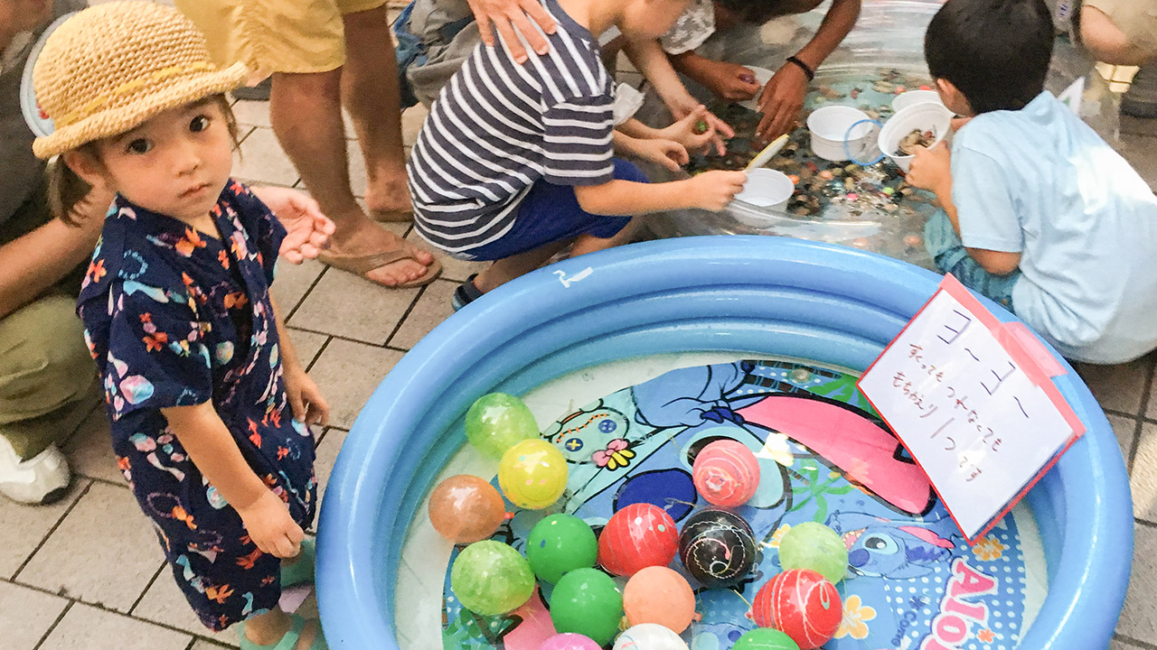 大宮でももらってきたヨーヨーが欲しいというので、こういうのは積極的に参加。