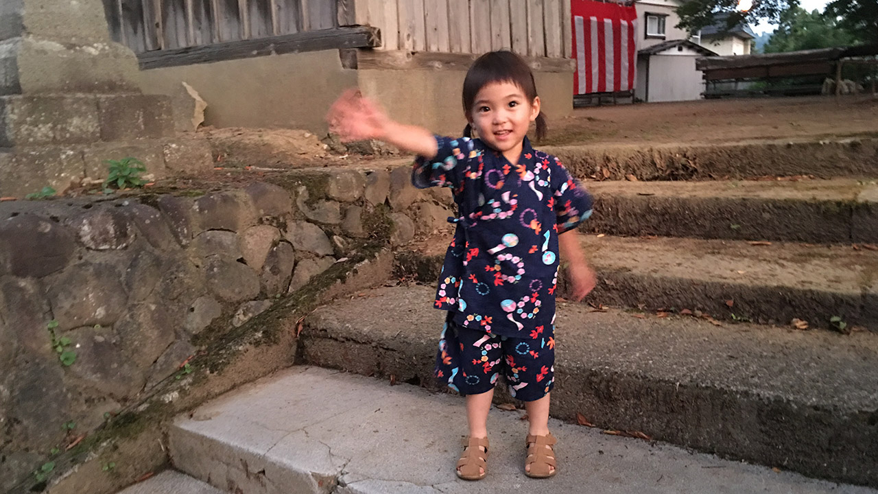 盆踊りにやってきた。 まだ準備中の神社。ご近所さんが数人ちらほら。