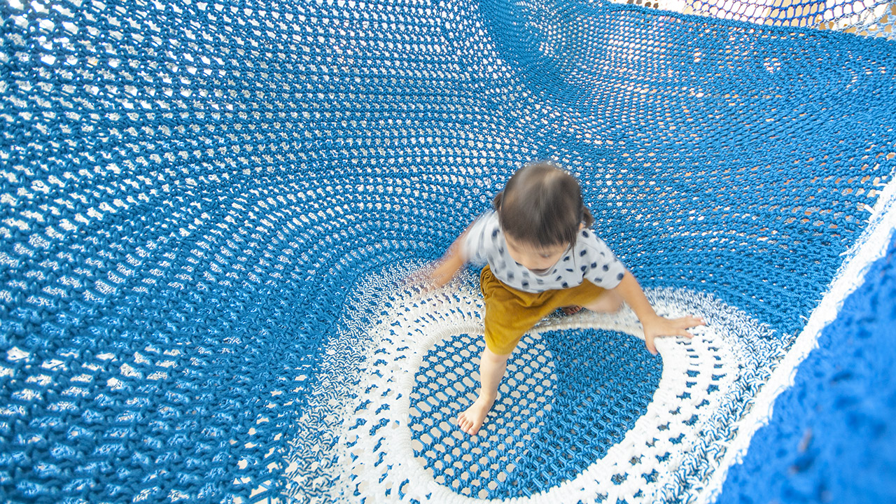 涼しげに編み込まれたネットの有機的な空間を
