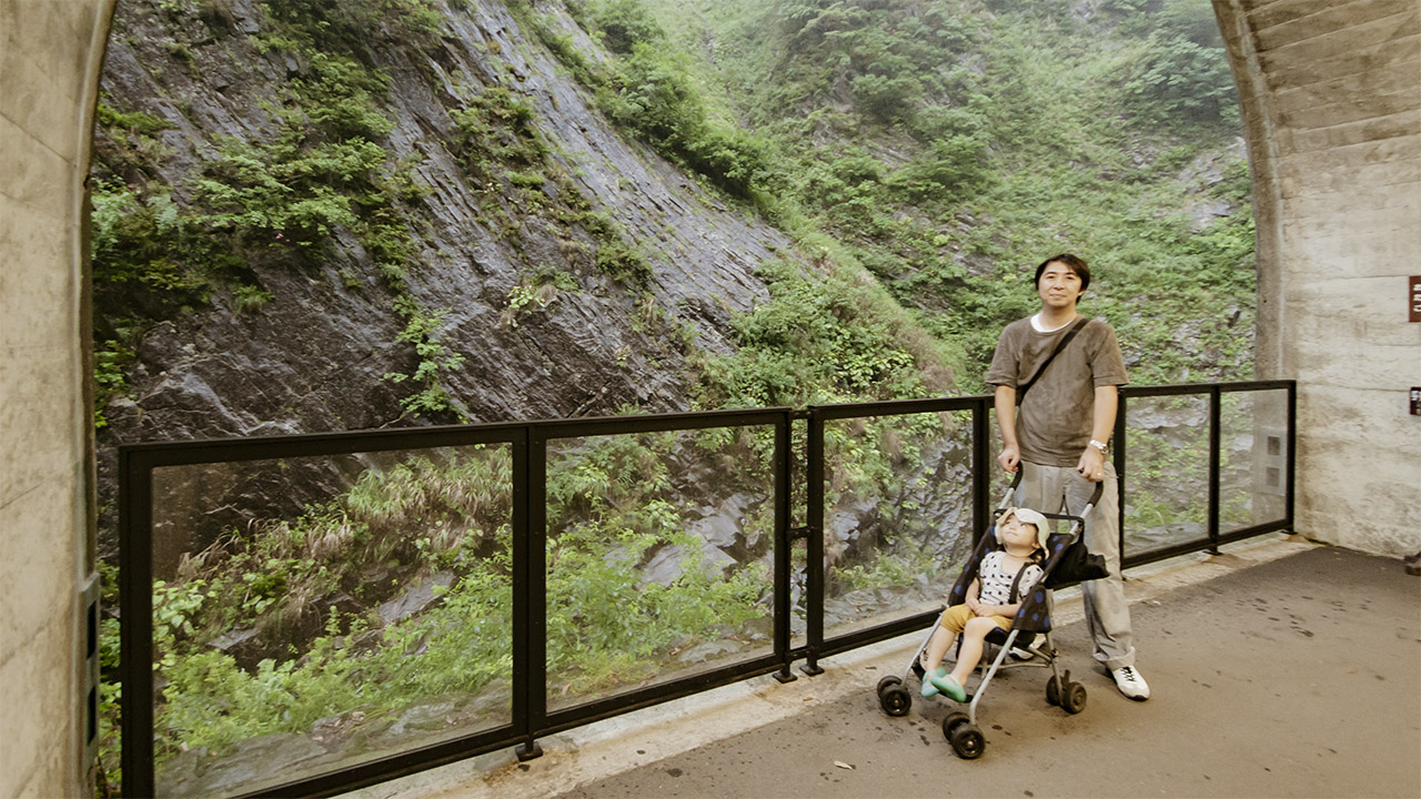 トンネルの遊歩道の先に、崖を見学する施設なんですね。