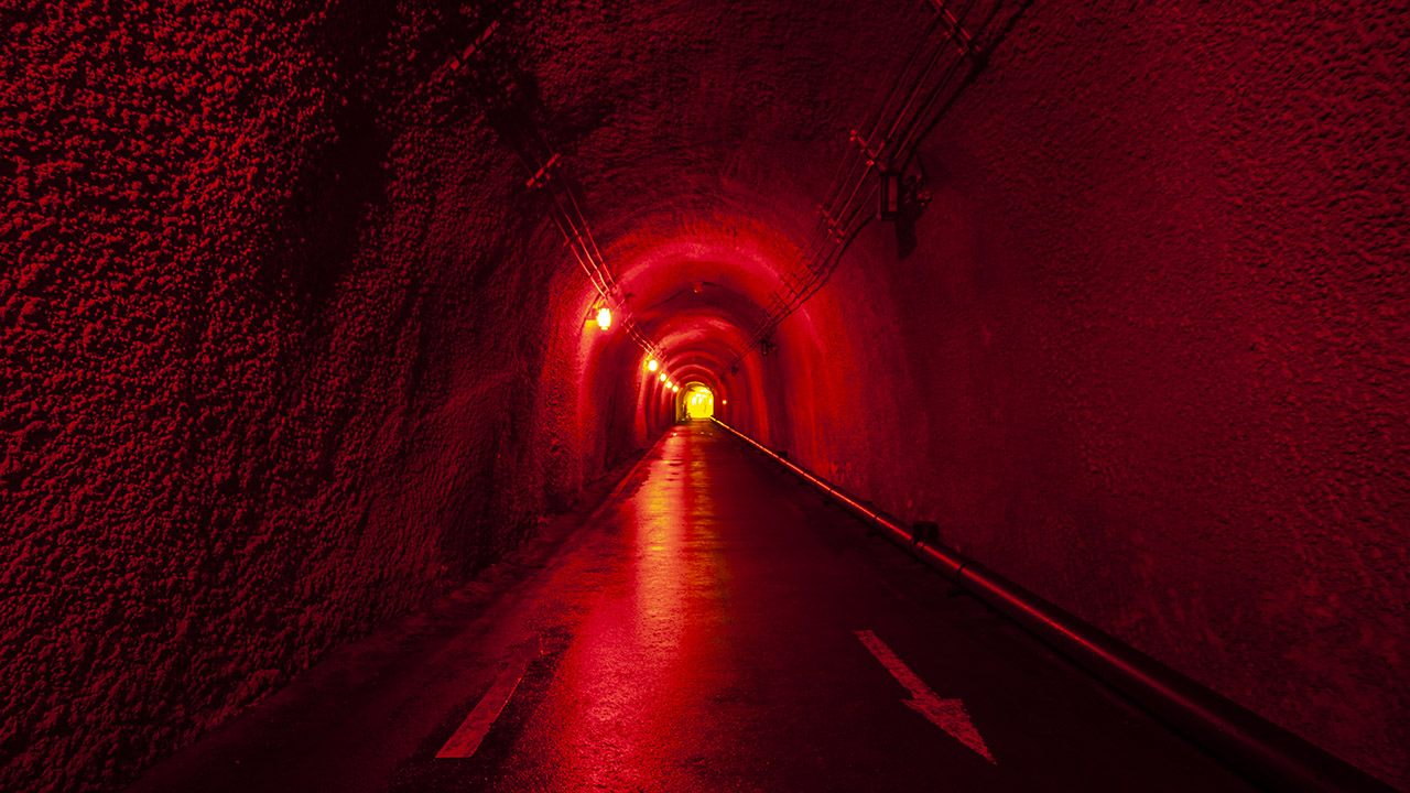 その遊歩道がトリエンナーレで怪しくライトアップされている。