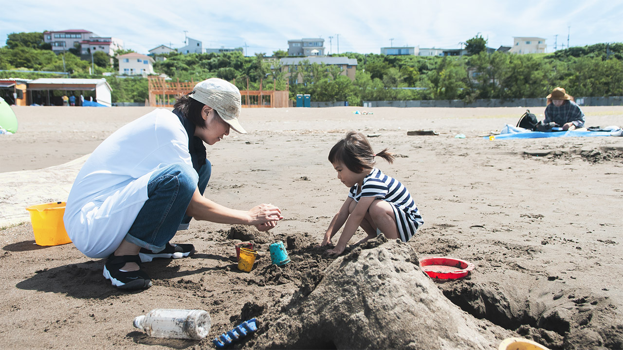 海水を流し、大波に浚われ、大笑い。なかなか楽しい。