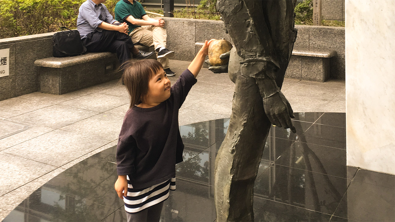 区役所にあるリンゴをいつもポンポン触ってます。