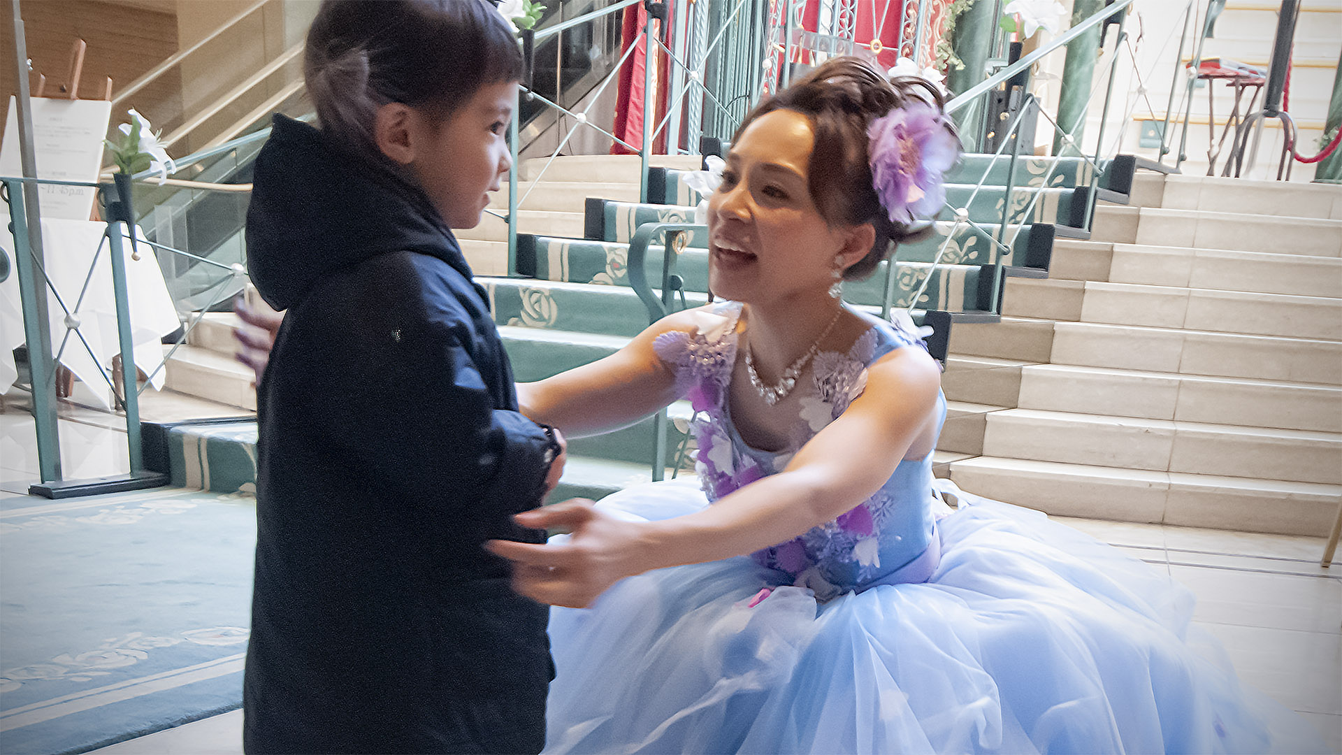 そして イベント終了のタイミングを見て 浅沼杏花さんに写真をお願いしちゃいました。 木花もお姫様を目の当たりに、「お城に遊びに行っていいですか?」と聞いていました。 大きくなったらドレス来ておいでとの答えに、すごくウキウキしていました。