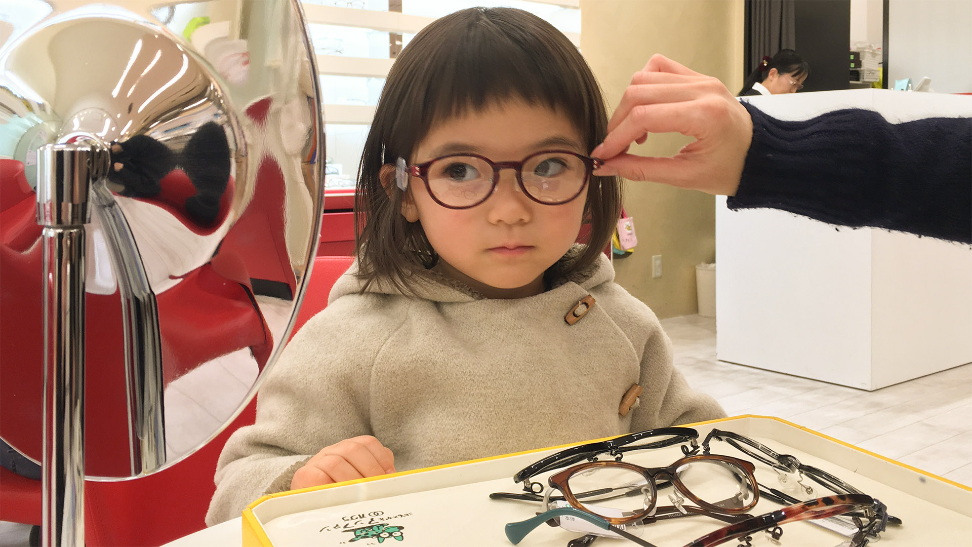 私は今のところ裸眼なので、メガネ屋さんには縁遠い人間なのですが、 妻の家系はみんな目が悪いということと、 3歳児検診前に偶然異常?を見つけてもらい 小児眼科に行き、検査を受け、処方箋をもらってきたので、 メガネ選びをしています。