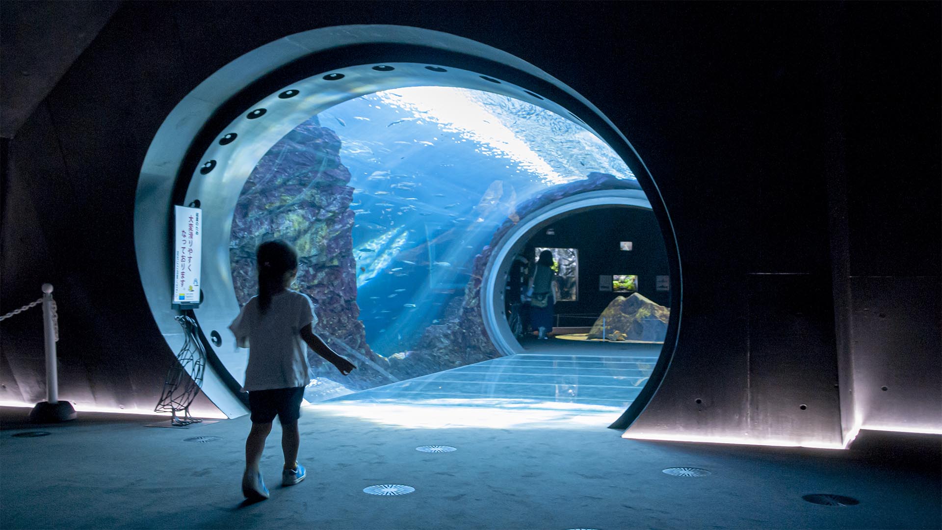 日本海ゾーンにある トンネル水槽。 ここに来るまでも、薄暗い多面体の洞窟のようなところを抜けて、 この期待感。 設計のプロセスも楽しかったんじゃないかと思う。 水族館CG描いてみたいな。 いままで一度も巡り合ってないしごと。