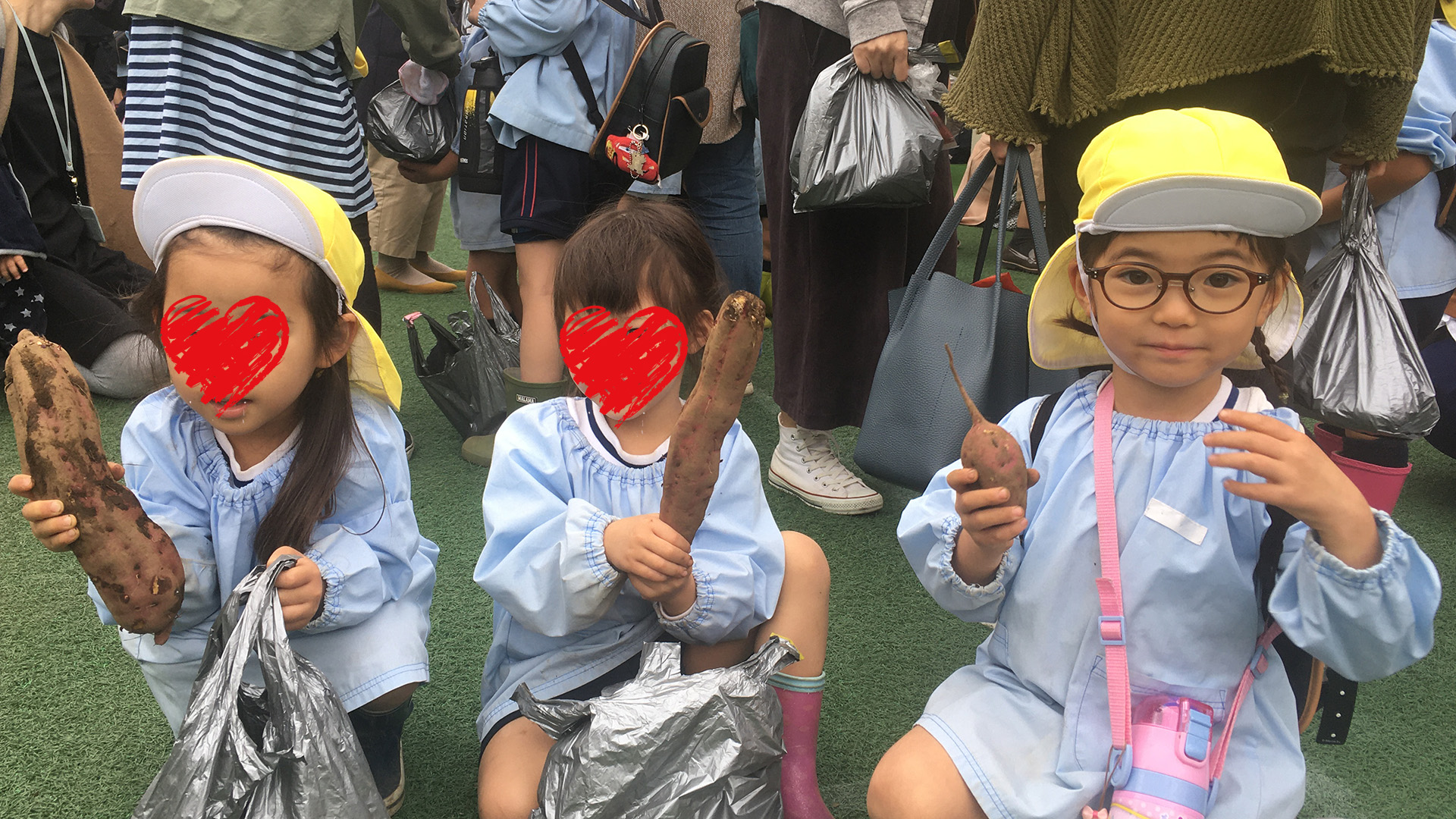 幼稚園の芋ほり。バスで川越までいってきたようです。