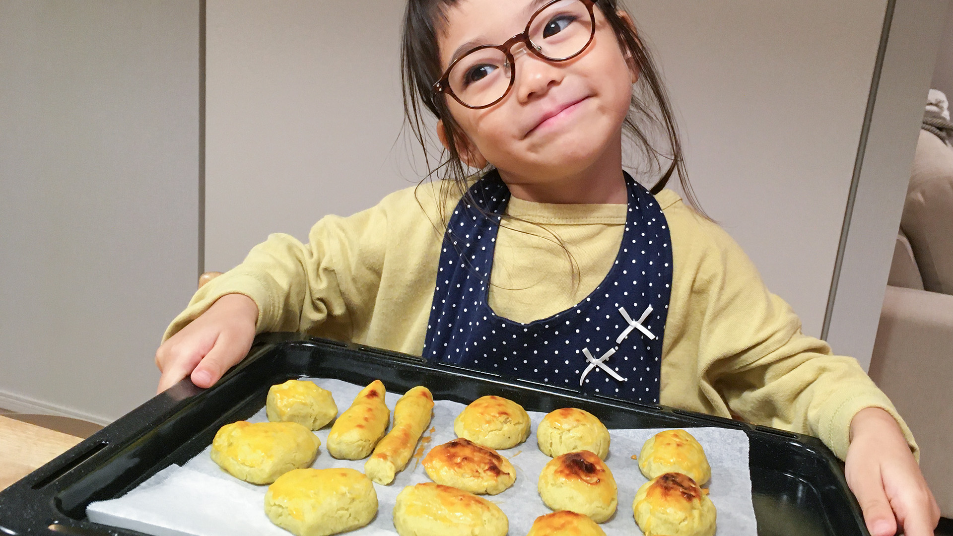 スイートポテトが焼けてご満悦です。