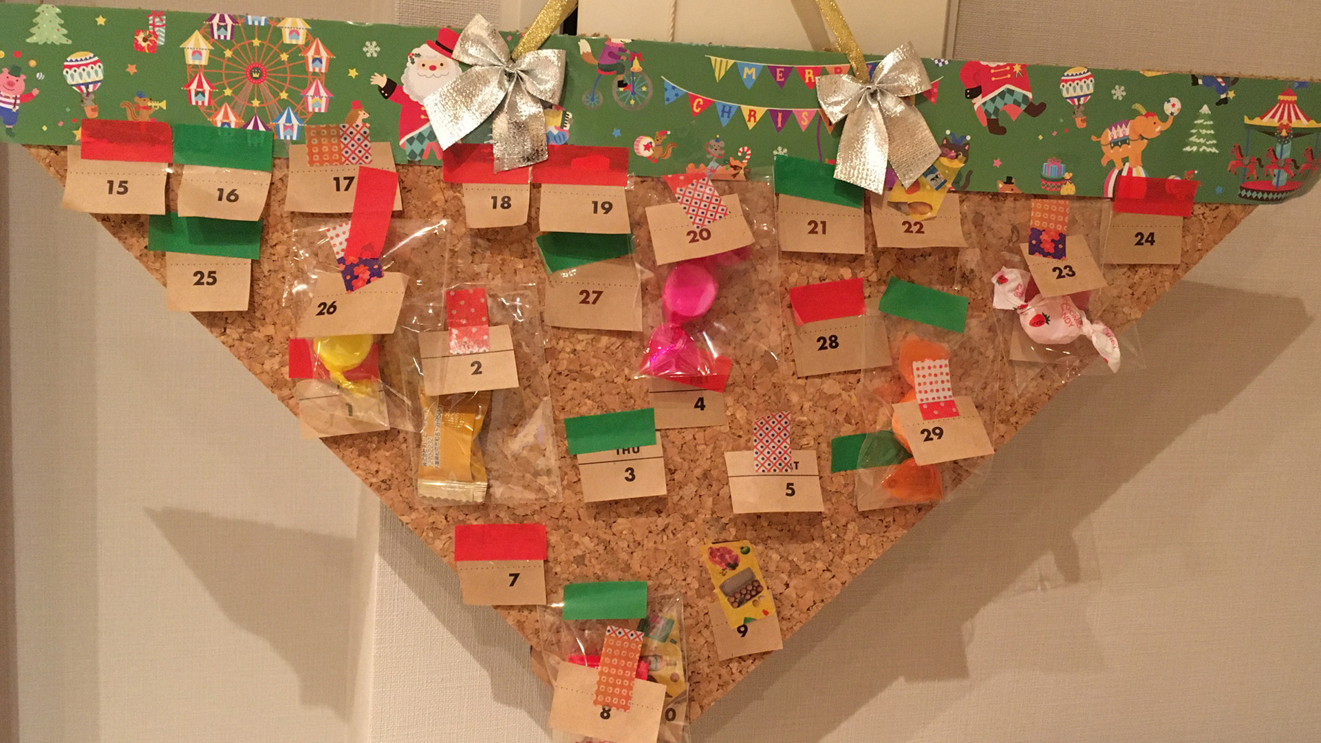 クリスマスまでのカウントダウンを楽しめるカレンダー。