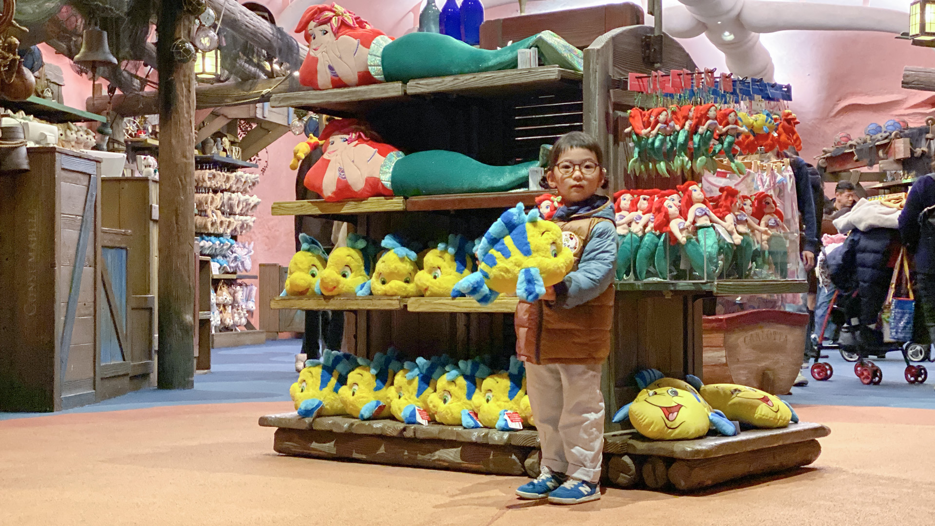 アリエルの人形を前回買った店を覚えていたのか。 今回は友達を連れて帰るんだと いきなりフランダーのぬいぐるみをもってこっち見てます。