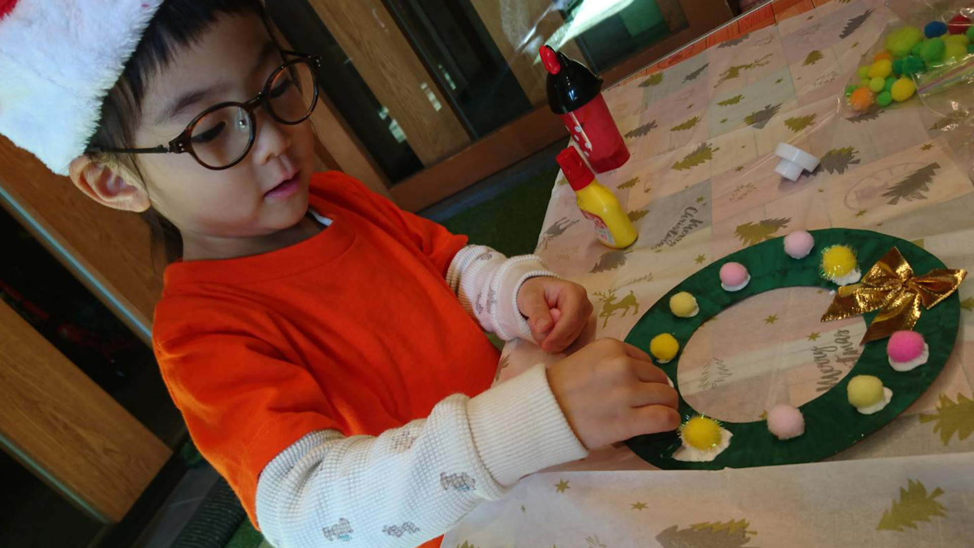 今日の英語はColorとBigOrSmallを勉強し リースづくり。