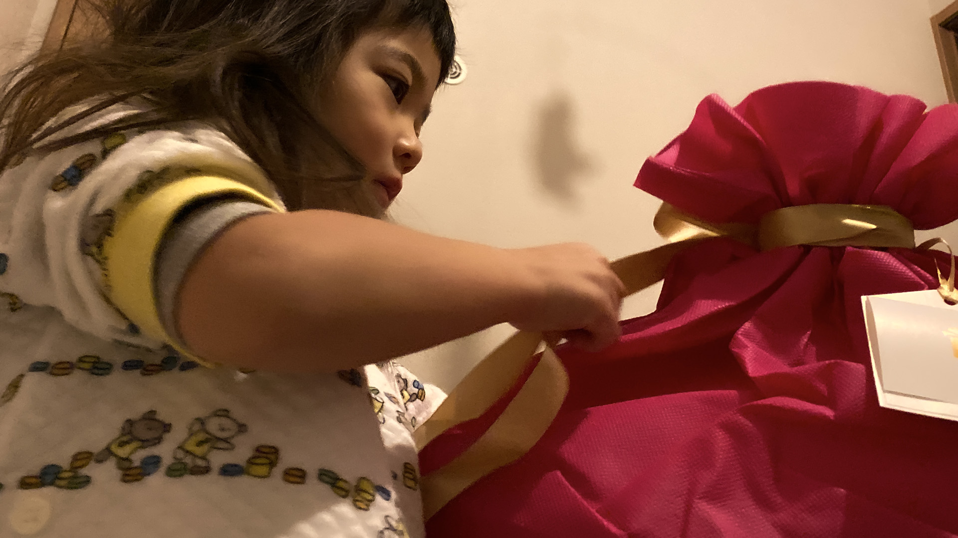 サンタ大作戦は 大きな袋を二つも置いて行ってくれました。