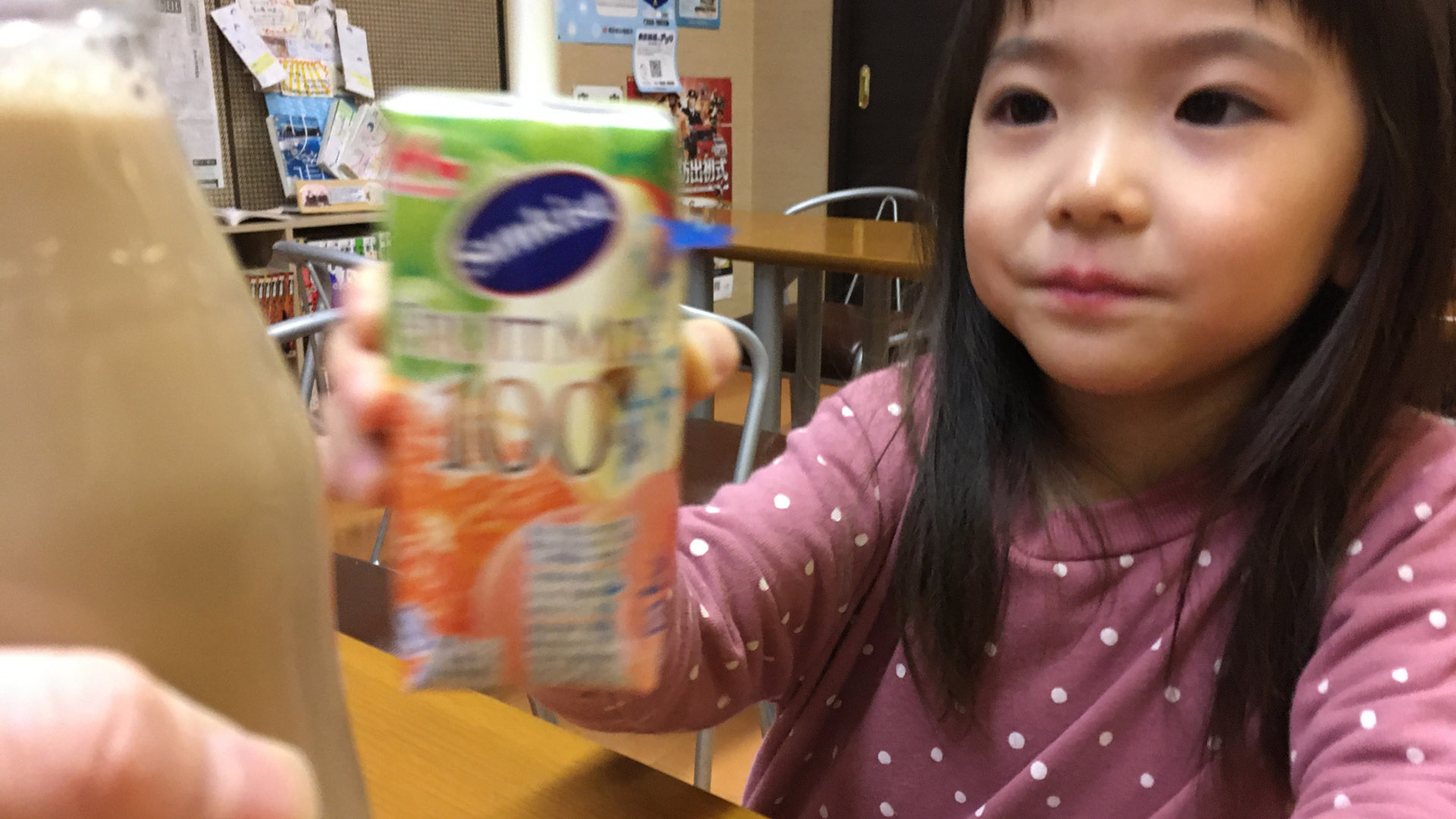 コーヒー牛乳とオレンジで乾杯。