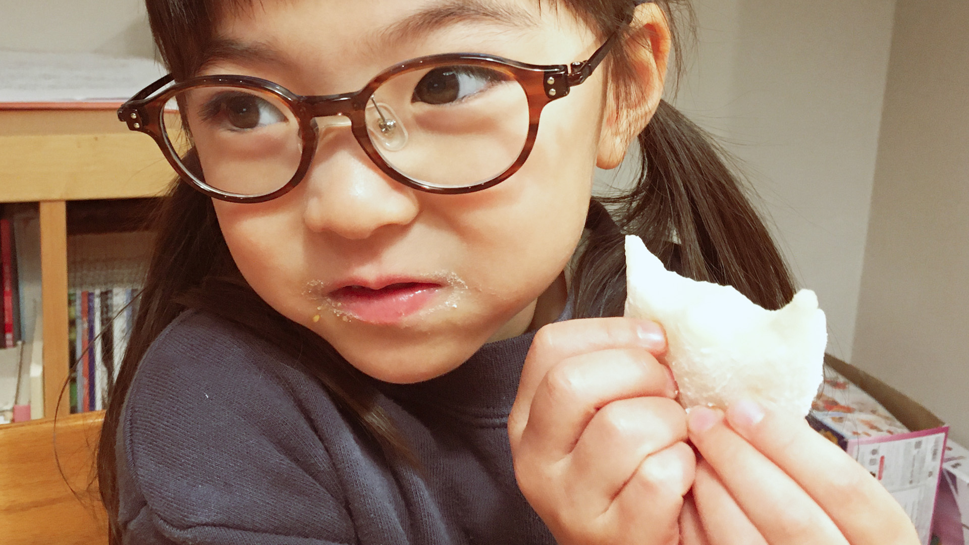 餅を早速いただいている。