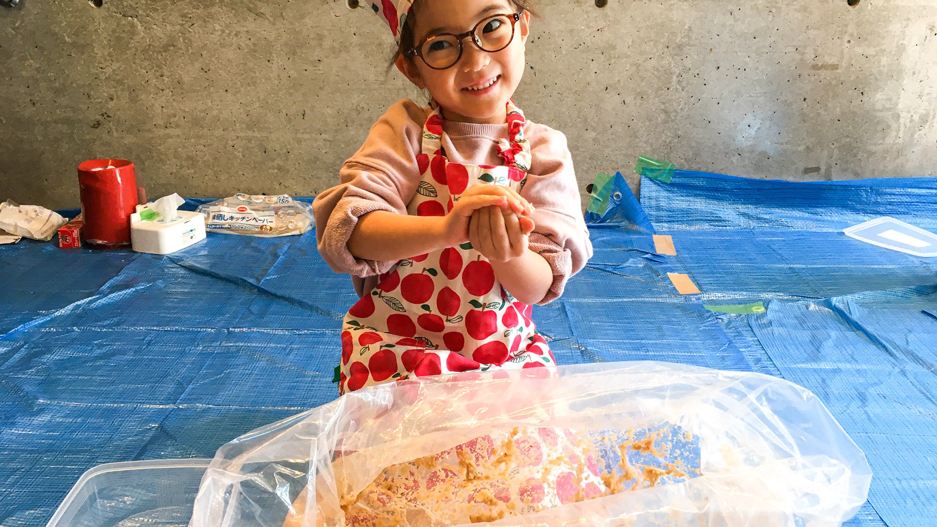 今日は教室でみそづくり体験。