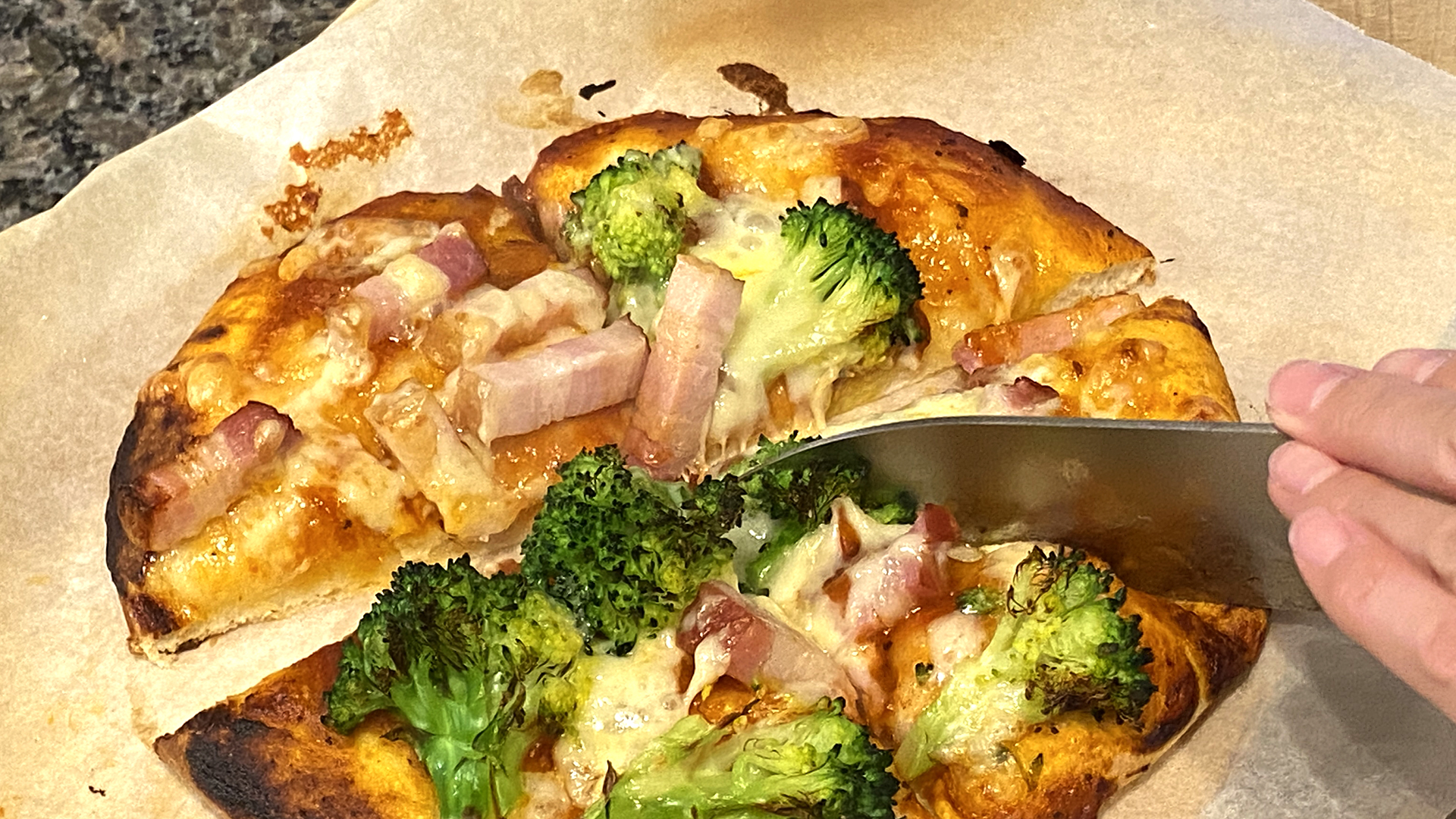 牧場のチーズ入りでピザ完成。