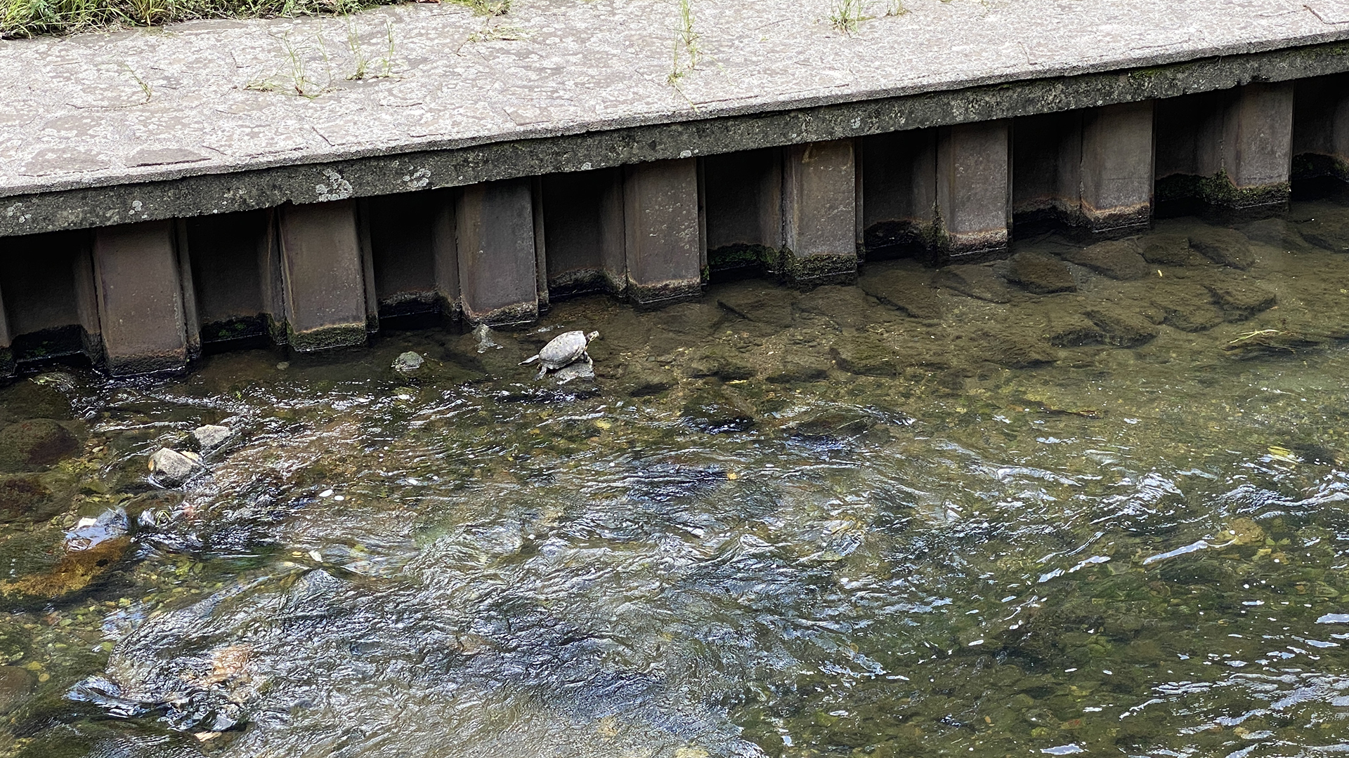 大宮まで 3人で散歩中。 亀がいた。