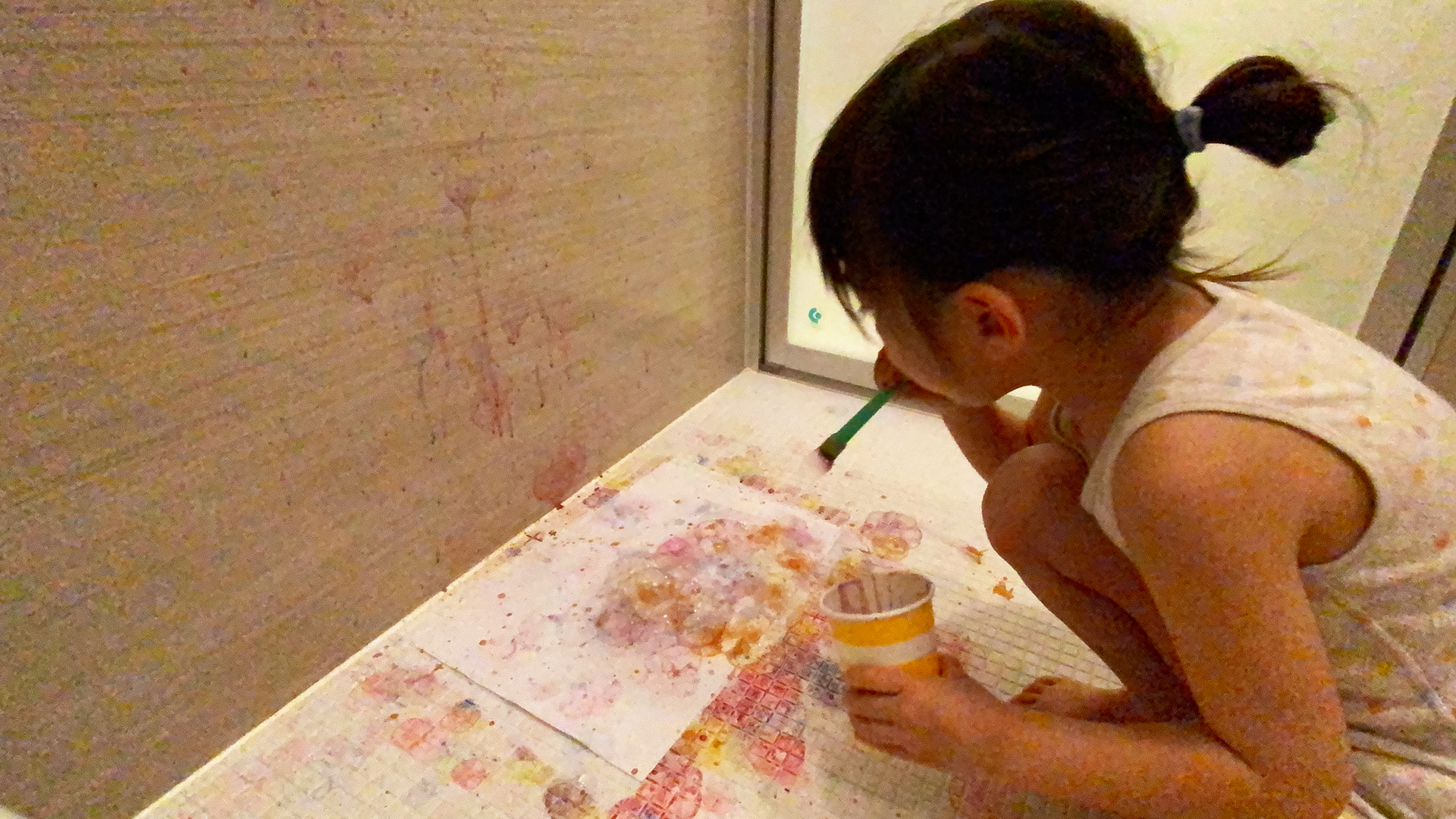 風呂場でアート。 思いっきり外でみんなでやりたい。
