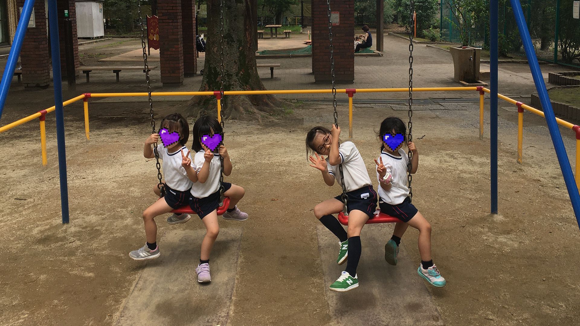 幼稚園の友達とへんな乗り方が流行っているよう。