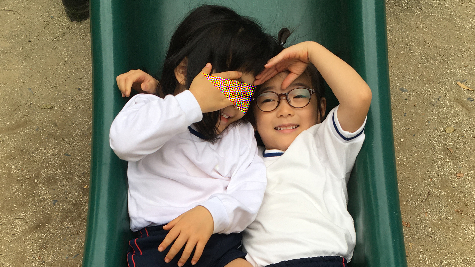 緑の滑り台は ソラマメみたいだ。