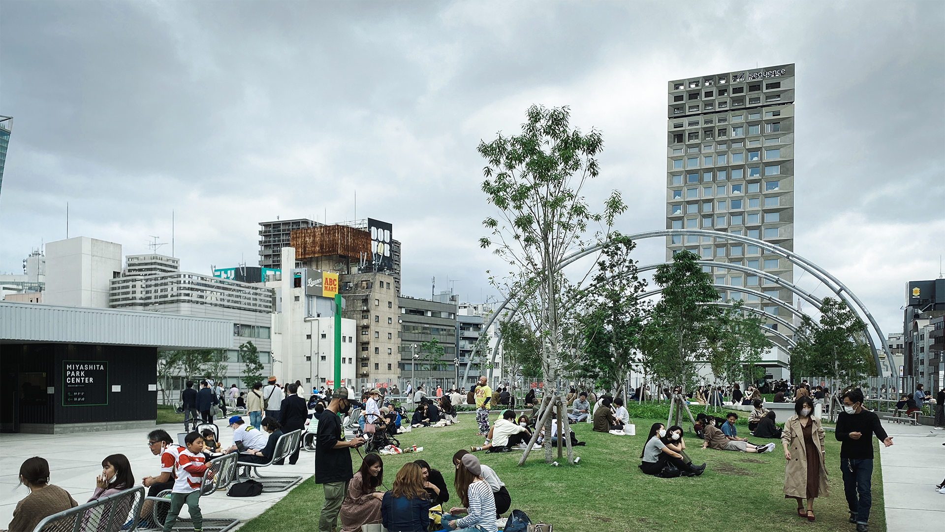 渋谷のど真ん中で 芝生があってみんな集まって。